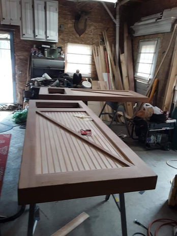 A custom built double barn style door. Completed with custom carpentry, framing, and painting.