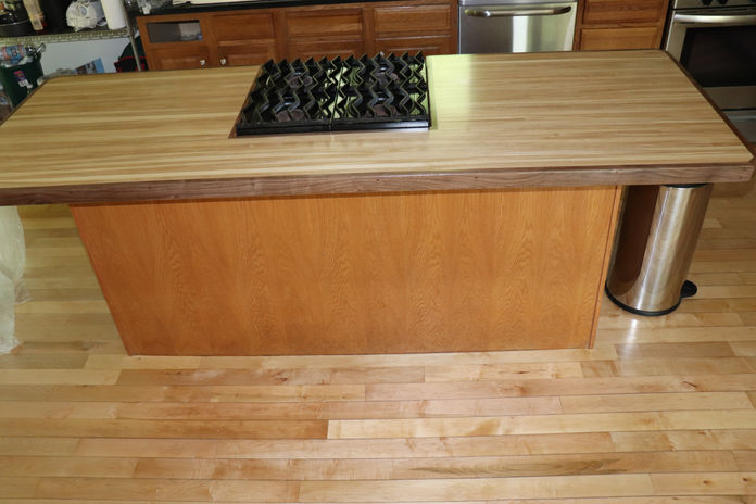 A kitchen restoration with floor sanding, custom countertop, new countertops, and plumbing.